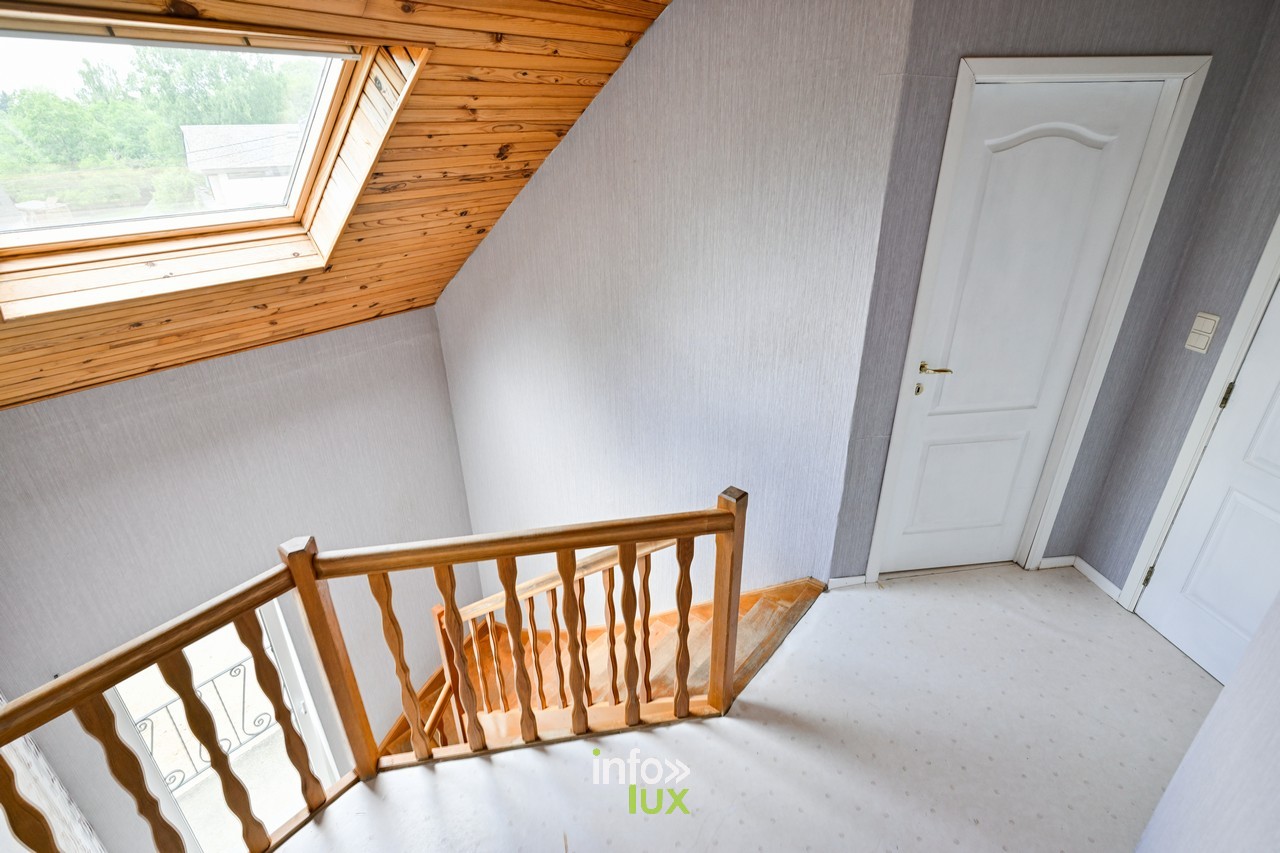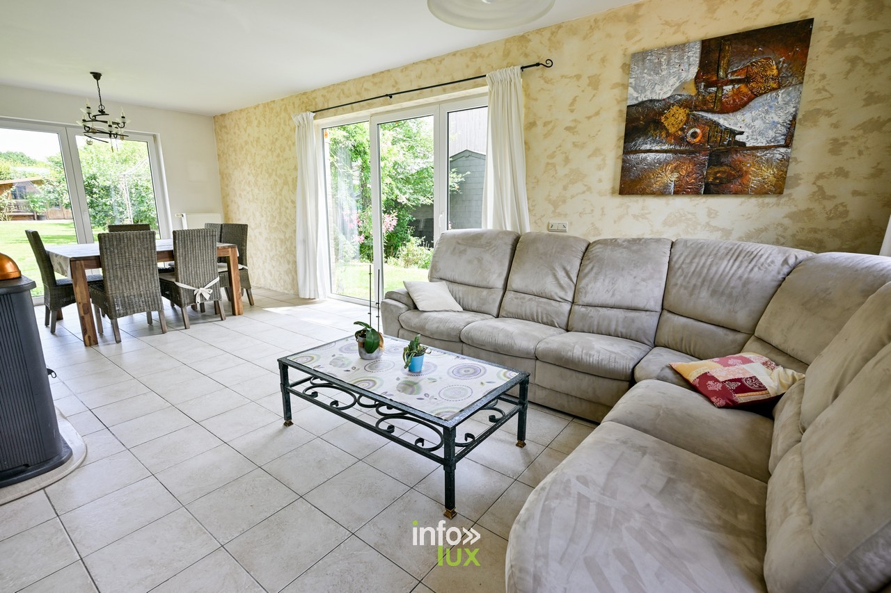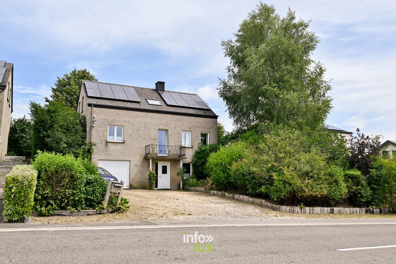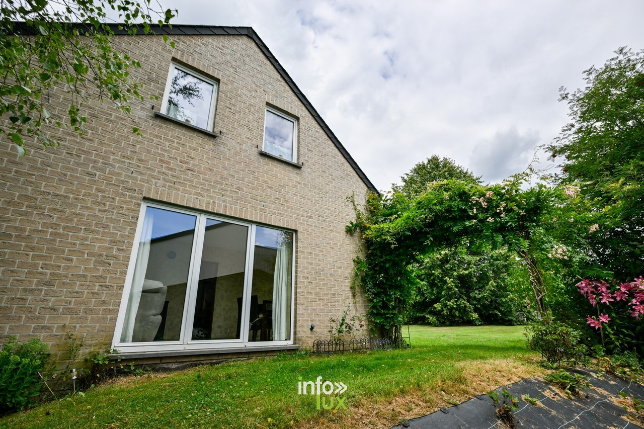 À vendre : belle maison 4 façades construite en 2003 — ±180 m², 4 chambres, jardin, garage, domotique — à Marbehan (Habay 6724). À 30 min de Luxembourg-Ville, sur l’axe E411. À rafraîchir avec petits travaux de finition.