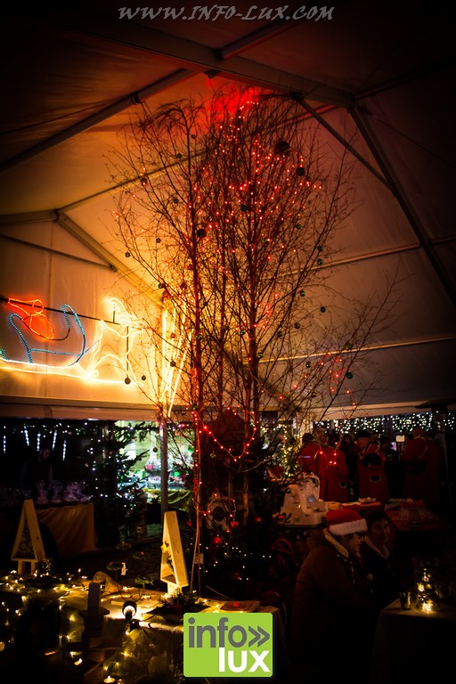 De loin, on peut remarquer le soin particulier apporté aux décorations lumineuses entourant cet évènement. Sous un immence chapiteau, de nombreux commerçants et artisans se sont réunis, créant ainsi une ambiance conviviale et chaleureuse, celle-ci régulièrement accentuée par des cors de chasse énergiques et volontaires !