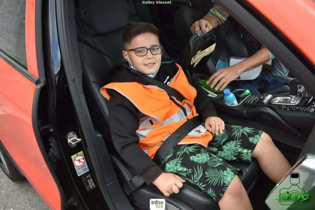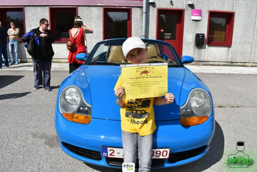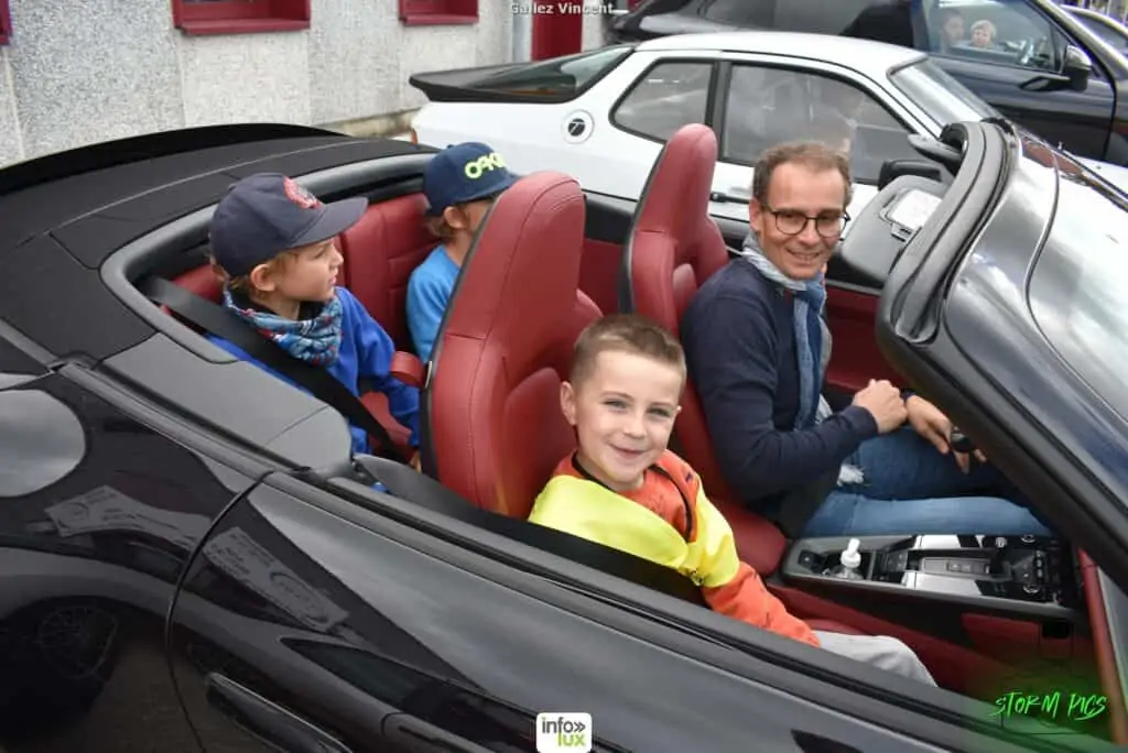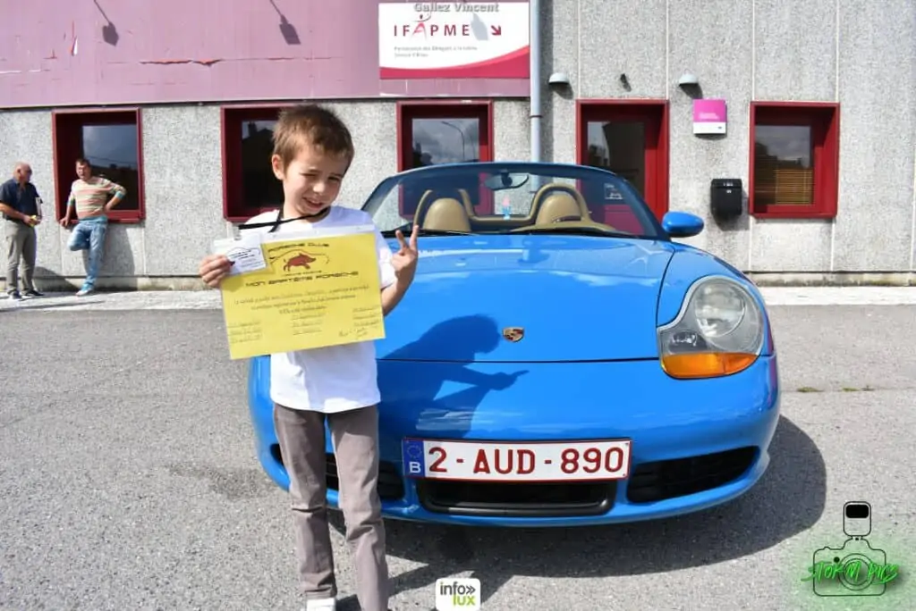 Avec de grands yeux écarquillés, les enfants ont vraiment profité de ce moment privilégié. Qui peut dire avoir été dans 9 Porsche différentes pendant la même journée.. Repas de midi organisé à Habay-la-Neuve, petit clin d’oeil à l’ASBL la Bourriche pour son accueil sanitaire.