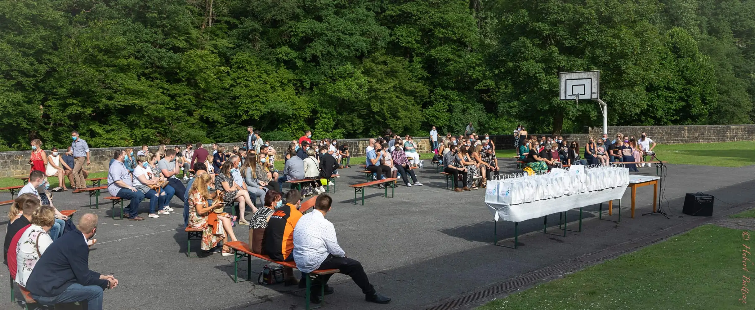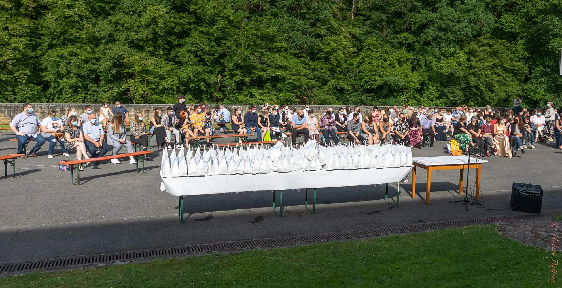 Ce lundi 28 juin dès 18h s’est déroulée la cérémonie des proclamations à L’Athénée Royal de La Roche-en-Ardenne. Sous une météo clémente, au bord de l’Ourthe, dans un décor exceptionnel, les étudiants des classes terminales ont été mis à l’honneur.