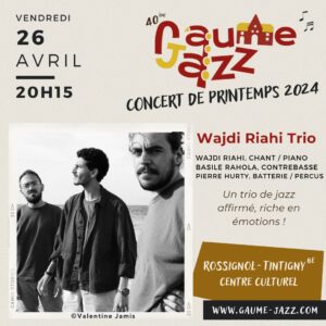 - Rossignol > Gaume Jazz > Wajdi Riahi TrioGaume Jazz de Printemps – Rossignol (Centre Culturel) Wajdi Riahi Trio Partez pour un voyage plein d’émotions entre Tunis & Bruxelles avec un trio piano-jazz affirmé aux nuances orientales savoureuses Avec… Read more: Rossignol > Gaume Jazz > Wajdi Riahi Trio
