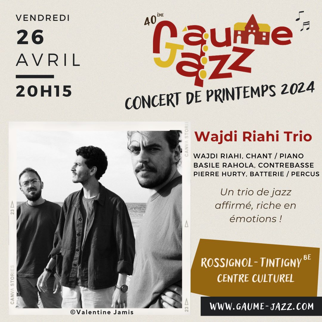 Avec la saison printanière qui s’installe, le jazz revient en force avec un Gaume Jazz de Printemps chaleureux aux nuances orientales. Organisée le vendredi 26 avril 2024 dès 20h15 à Rossignol, cette soirée accueille le trio belgo-tunisien, Wajdi Riahi Trio, pour un concert jazz savoureux et singulier !