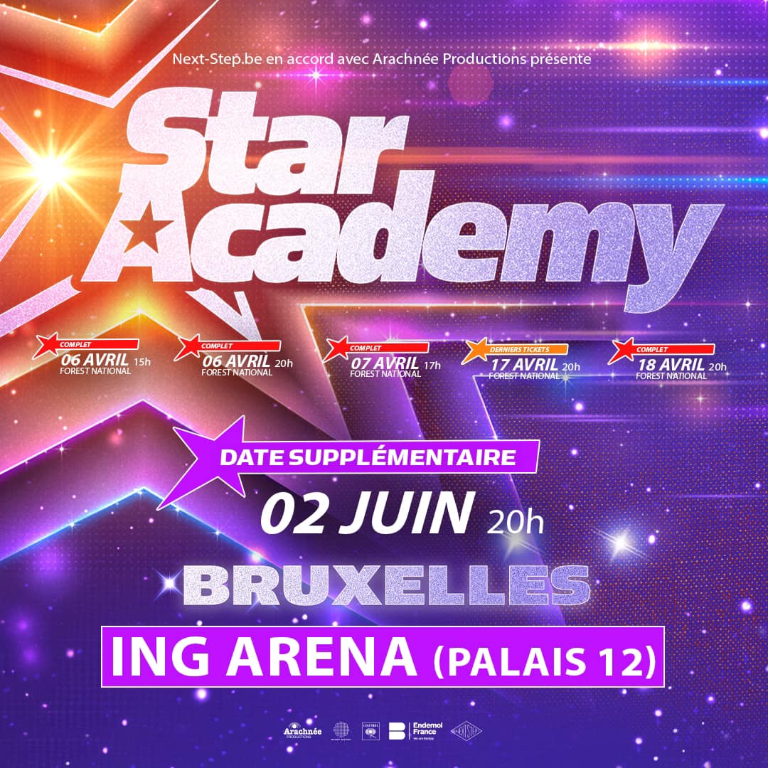 - 6 avril 2024 à 20h : Tickets Star Academy Forest Vorst Nationaal/Forest National 6/04/24 20:00