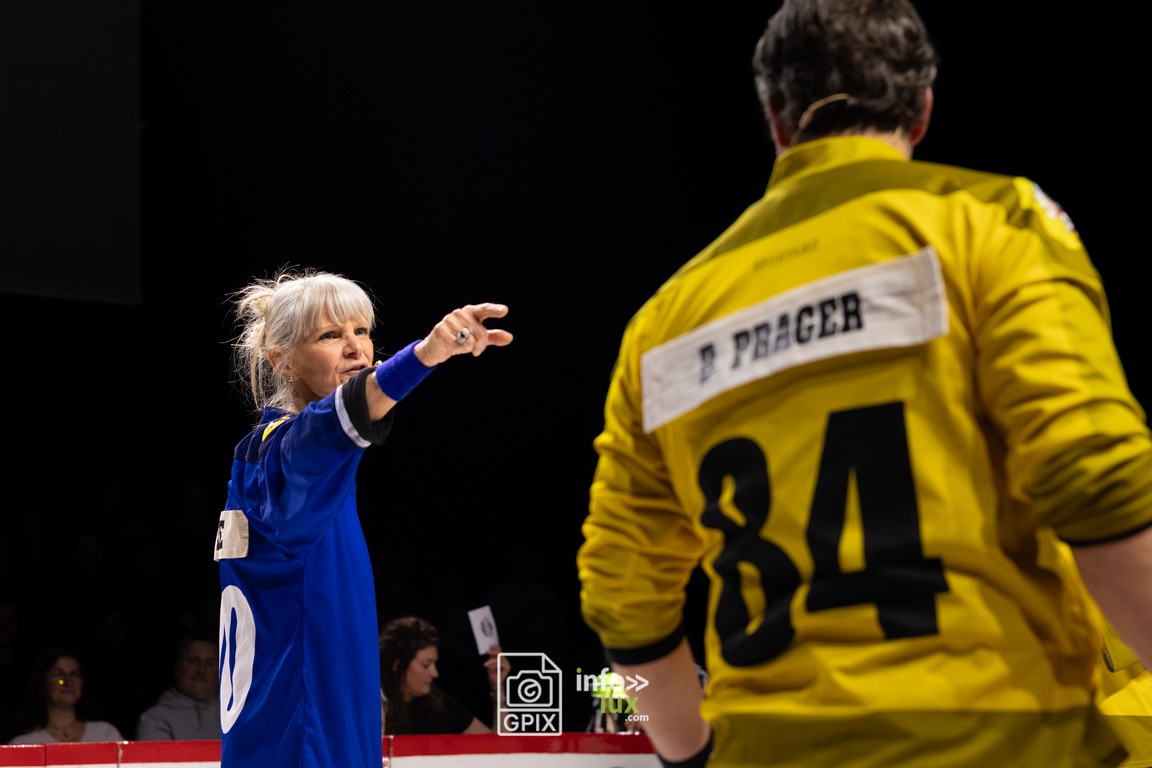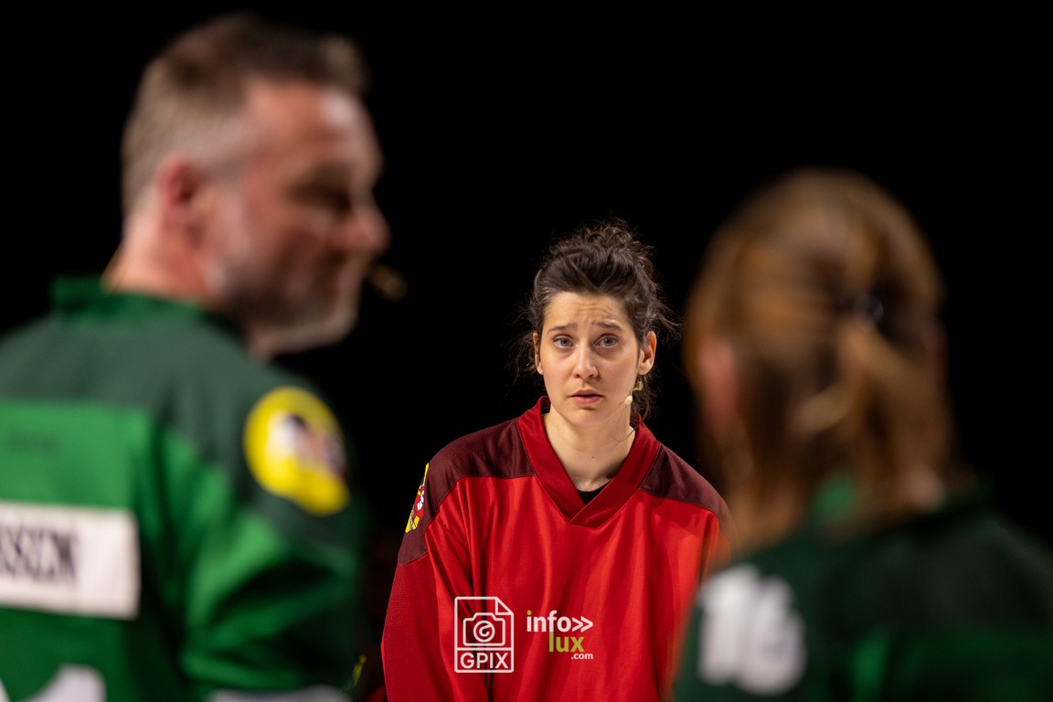 - Julie Lahure, jouteuse lumineuse, dont la voix et la joie communicative illuminent la patinoire.